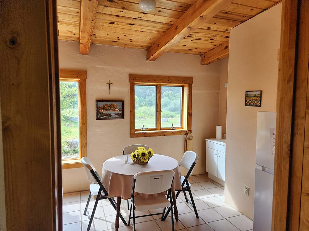 There is a small kitchen area with a hot plate, coffee maker, microwave and refrigerator. We are no longer providing meals for guests staying in the hermitage. Individuals are responsible for their own meals. We do not discount the rate for the hermitages.